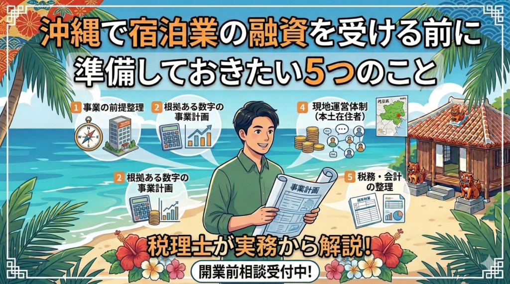 この記事では、沖縄で宿泊業の融資を検討している方に向けて、融資を受ける前に準備しておきたい5つのポイントを、実務経験をもとに整理してお伝えします。